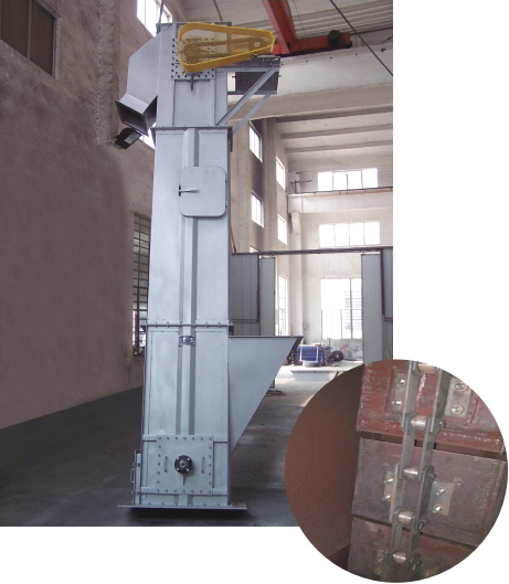 TH型鏈式斗提機載荷大,便于保養(yǎng),可用于輸送量較大,密度>1.5t/m3的顆粒狀或小塊物料的輸送。